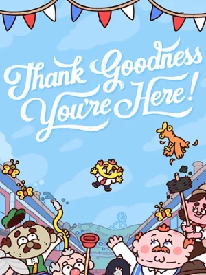 Thank Goodness You're Here! is a 2024 comedy adventure game developed by Coal Supper and published by Panic. It is set in the fictional town of Barnsworth in the North of England, where the player controls an unnamed, yellow, very small salesman as they explore the town and help the inhabitants with their problems. Gameplay is composed of moving around the cartoon-style 2D visuals and slapping things, which serves as an all-purpose interaction. The game has a limited narrative, and is primarily focused on surreal and humorous interactions with the people of Barnsworth.